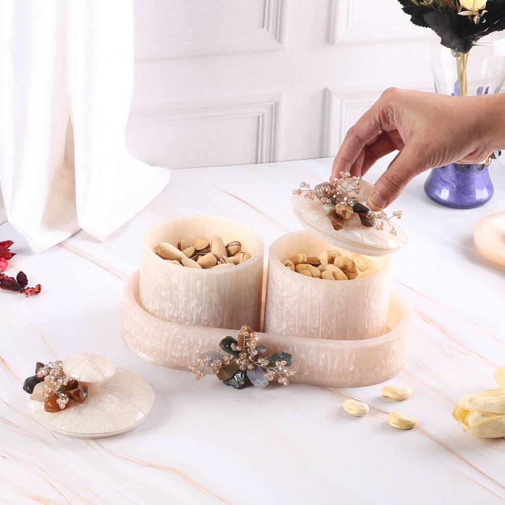 Whether for daily family use, festive gatherings, or as a thoughtful gift for housewarmings, weddings, and Diwali celebrations, this stylish organiser is a versatile storage solution. Easy to clean, long-lasting, and space-saving, the Dry Fruits Organiser Set of 2 is a must-have for every modern home.