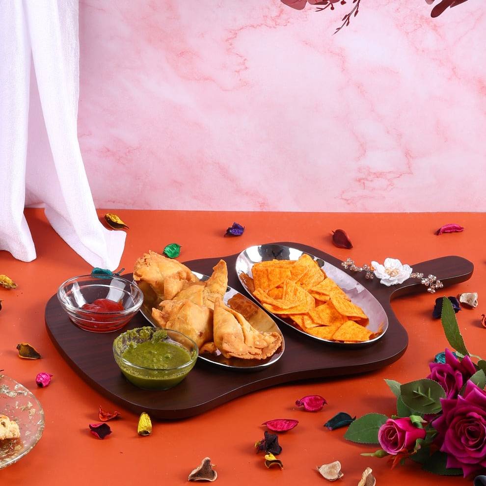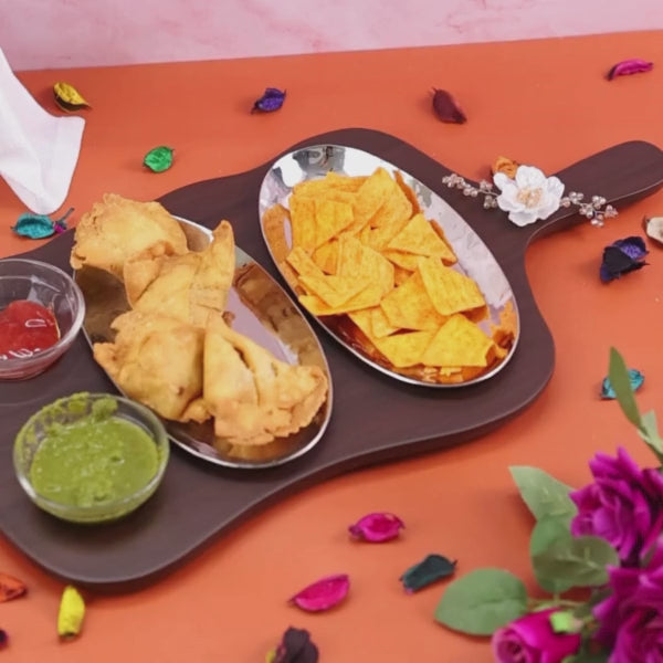 Bring elegance and practicality to your dining table with the Dual Dish Serving Platter Set with Snack Bowl. Featuring a beautifully designed two-section platter paired with a matching snack bowl, this set is perfect for serving chips and dips, fruits and sauces, or dry fruits and chutneys—keeping everything stylishly separated and well-organized.