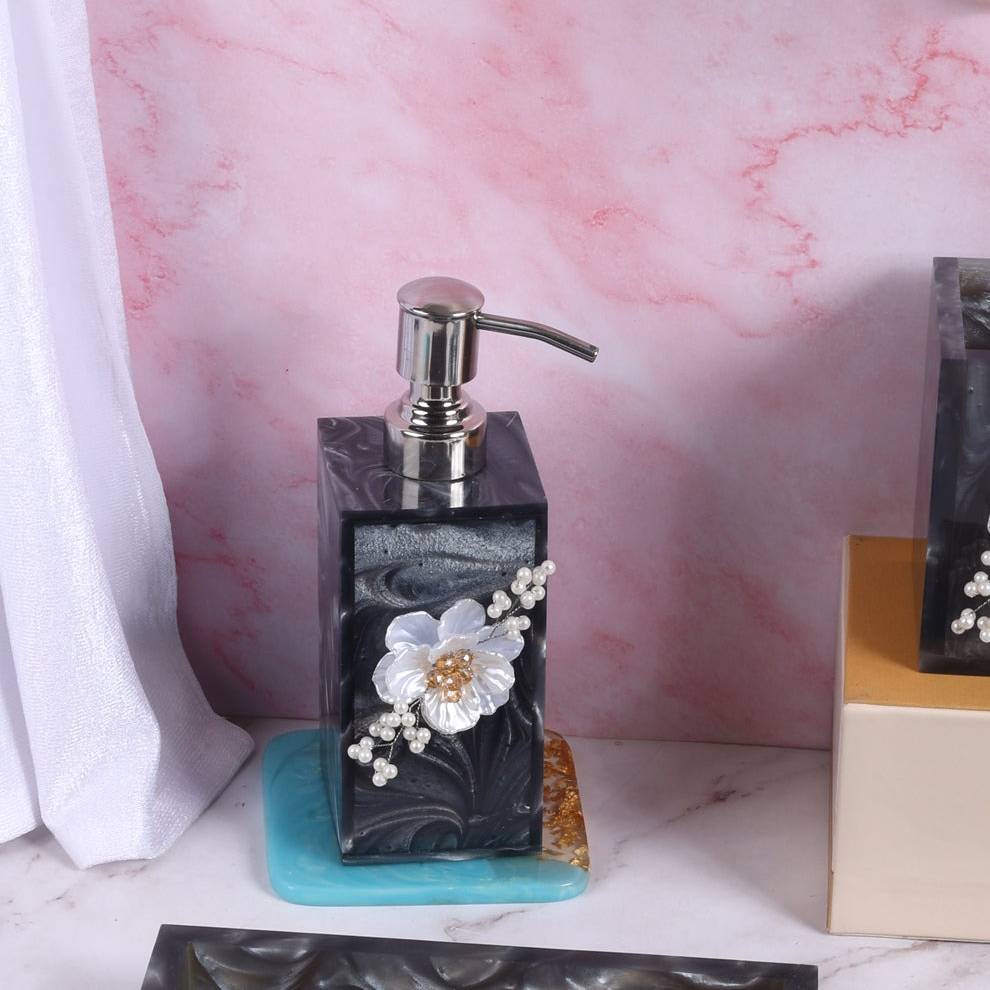 Bring modern elegance to your bathroom with Sajjakreation’s Ink Pattern Bathroom Three-Piece Set. Designed with a unique ink-style pattern, this set blends beauty and practicality seamlessly. It includes a soap dispenser, toothbrush holder, and soap dish—all crafted from high-quality, durable resin.