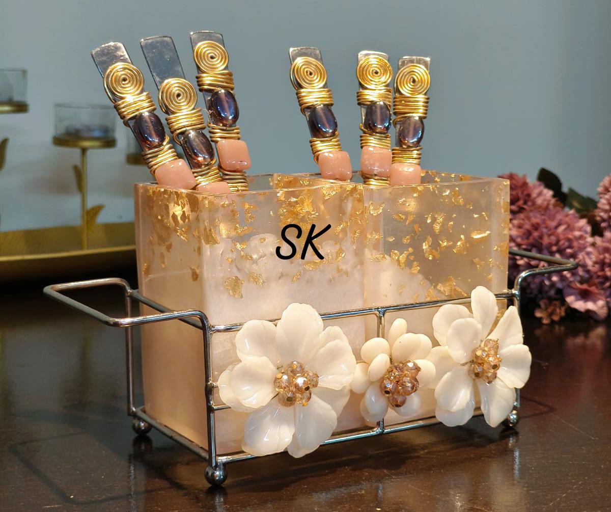 Keep your essentials neat and accessible with the Resin Holder from Sajjakreation. Designed with both functionality and style in mind, this elegant holder can be used to store a variety of items like pens, makeup brushes, or even small accessories. Whether placed on your desk, vanity, or kitchen counter, it helps you stay organized while adding a sleek, modern touch to your space.