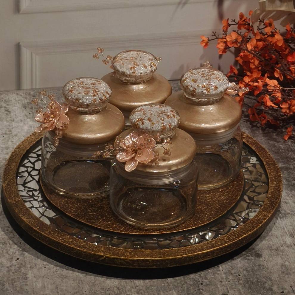 SajjaKreation presents the Airtight Revolving 4-Jar Storage Container, a stylish and functional solution for storing dry fruits, snacks, and other essentials. Featuring four airtight jars, it ensures your items stay fresh and protected. The smooth revolving design allows you to access each compartment easily. Whether for your kitchen, pantry, or dining table, this organizer adds both practicality and elegance. Keep your space clutter-free with a functional storage solution that blends seamlessly into your decor.