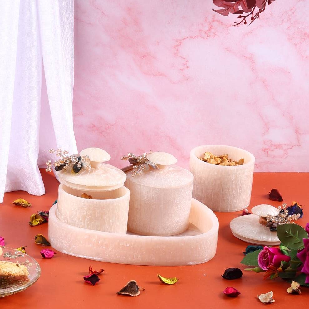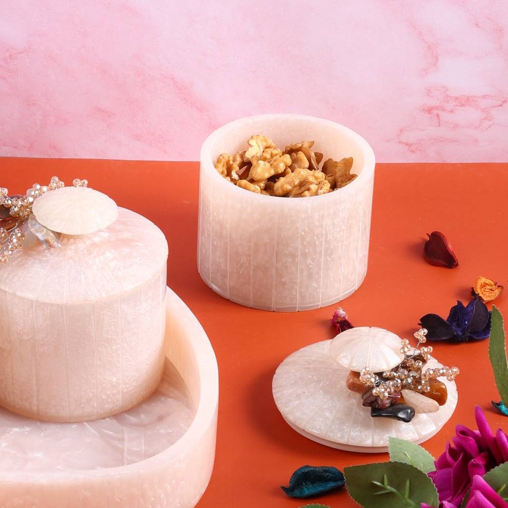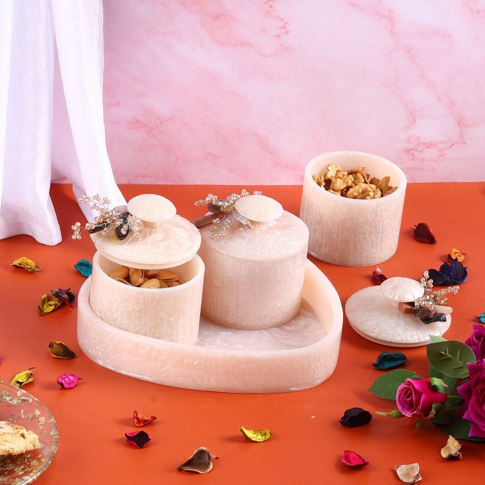• Smooth revolving design for easy reach • 3 resin bowls with caps for freshness • Marble-look finish elevates any table • Spacious compartments for dry fruits and sweets • Durable build for long-term use