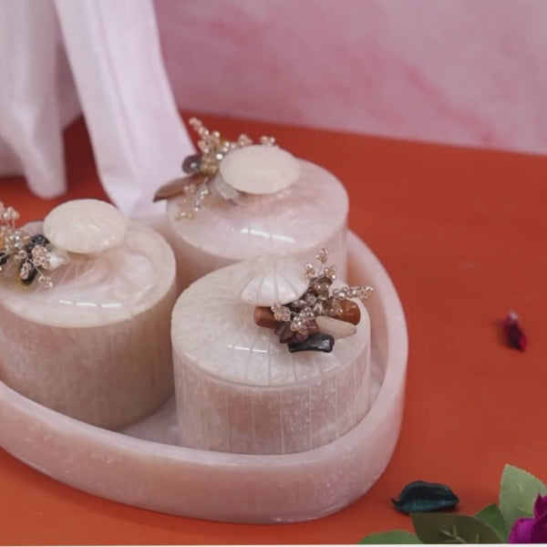 Serve and store beautifully with the Revolving White Marble Dry Fruit Organiser. Three lidded resin bowls keep snacks fresh while the smooth rotating base provides instant access—perfect for festive gatherings and everyday snacking.